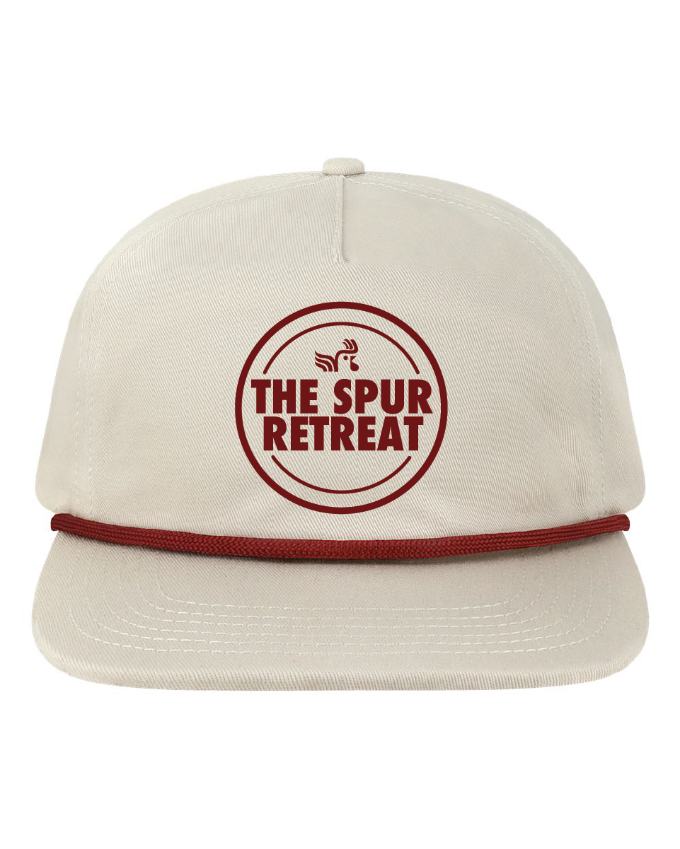 - Five-panel, low-profile with wide rope braid